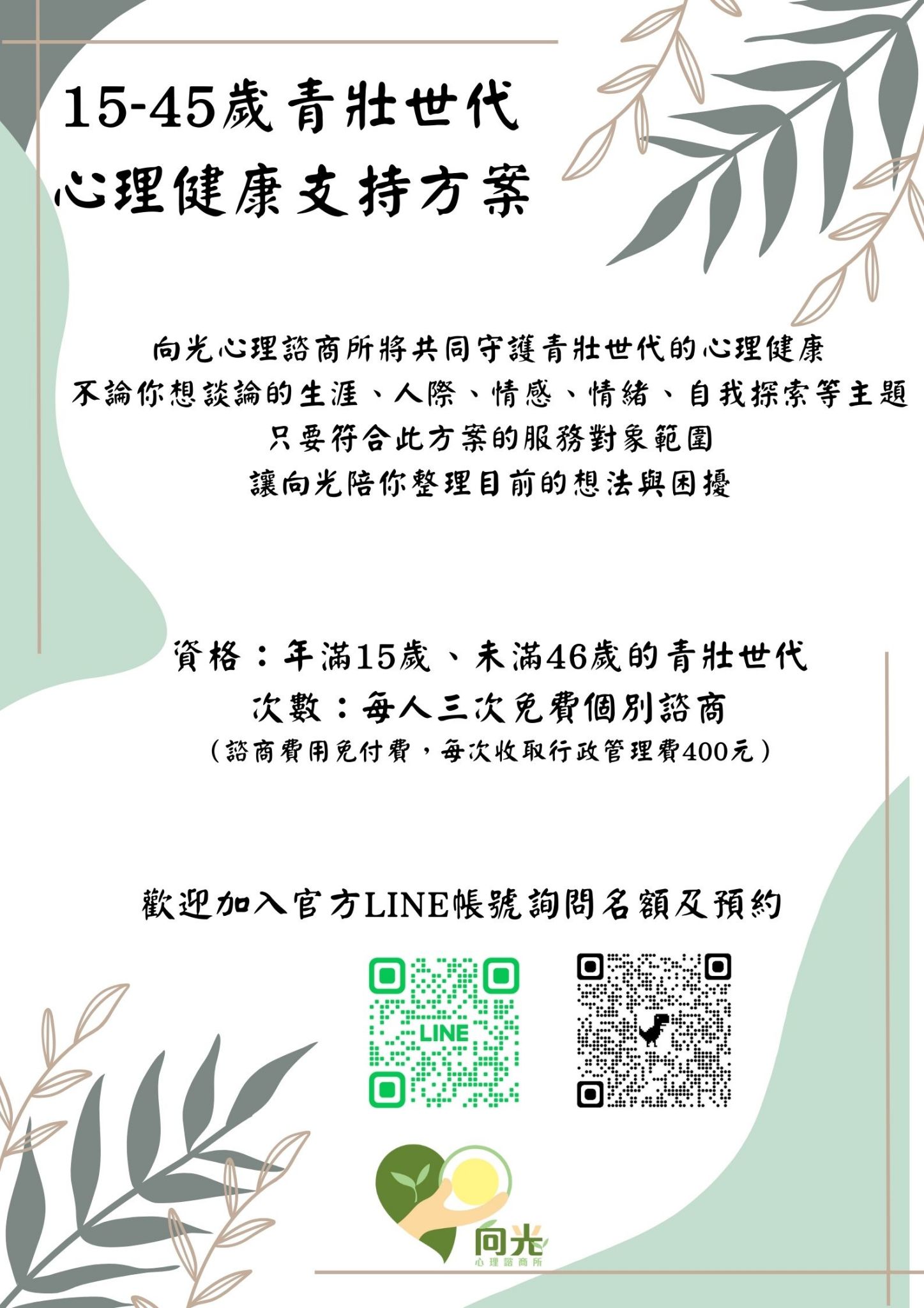 向光心理諮商所將共同守護青壯世代的心理健康囉!